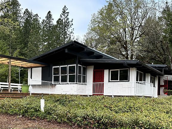 Sellers are accepting backup offers! You must see this mid-century-modern charmer which has been partially remodeled/ upgraded. This property is semi-secluded, yet only about ten minutes to downtown Grants Pass. Along with a fantastic two-bedroom, two-bathroom house with a wonderful deck from which to enjoy the mountain views, the property boasts a vintage ice-house/ pump-house with a hand-dug well/holding tank(not connected to household water), an in-ground water holding tank, a spare holding tank, a two-car garage with two shop/ storage rooms, a nice sized field that could be fenced for pasture or??? and much much more. The circular driveway gives the choice of using one of two accesses onto Redwood Highway.
