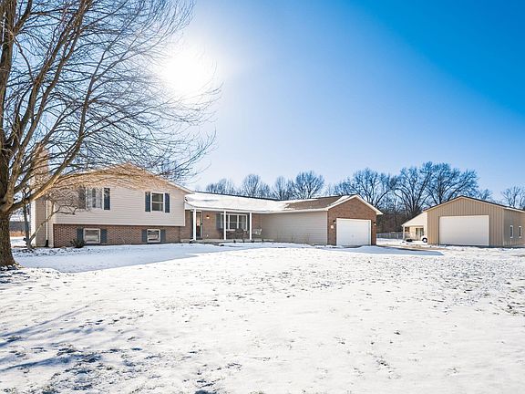 This beautiful split 4-level home on 1.95 acres offers endless possibilities! Located in the sought-after Big Walnut School District, and close to Hoover Reservoir. It features a convenient first-floor mother-in-law suite, three bedrooms upstairs, including a spacious owner's suite. The main level includes a family room with soaring ceilings and open kitchen with quartz countertops & oak cabinets with eat-in area. The first lower level boasts an additional cozy family room with a wood-burning fireplace, an additional bedroom, and a half bath. Step outside to enjoy the expansive yard, complete with both paver and cement patios for entertaining. And an additional building sized 34 X 24
