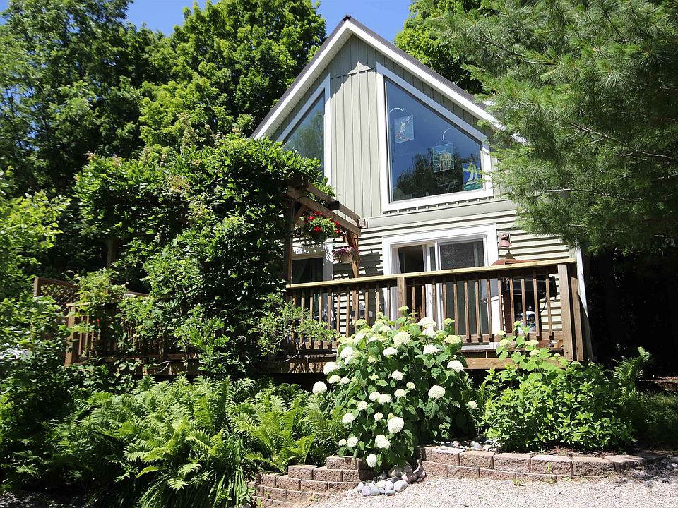 What an opportunity to have a completely remodeled home and the option to plunge yourself in Lake Leelanau with 800' of shared frontage! Clubhouse, Pickleball, sandy beach, dog beach, dock, games, grills and green grass! Home is just 6 quick miles from TC in The Leelanau County. Immerse yourself in the flowing pristine perennial garden swinging under the willow tree absorbing many quiet moments. Extensive remodeling/replacing and upgrades allow for a move in ready owner to still enjoy our summer. Main floor living with large upper bedroom and private bath and study. Partially finished lower has large rec room & 4th bdrm. Dine under the lush pergola out front or the lower level overlooking the woods. Truly a quiet setting and a private feel. For waterfront website go to www.TimberleePOI.com