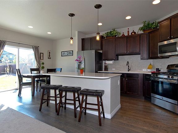 Enjoy this ranch-style 3 bed, 2 bath home in newer North Fork at Briargate community. Located in desirable District-20 school district, all schools are a short drive away with Pine Creek High School only a 5 minute walk down the street! Home boasts low-maintenance stucco exterior, full landscaping in front and back yards, and nice views of Pikes Peak and the front range. Gorgeous grassy yard in back with sprinkler system and included swing set, large concrete patio for entertaining and easy-maintenance xeriscape in front. If you love an open floor plan you will love this home! Enter the foyer to gorgeous hardwood floors which continue toward the kitchen. Stainless appliances (including GAS stove!) pantry cabinet, quartz countertops and custom tile backsplash. Enjoy your meals at the large kitchen island or at nearby eat-in space. Kitchen is open to the large living room making this a perfect set-up for entertaining. MAIN LEVEL LIVING at it's finest with all bedrooms, bathrooms, living spaces and laundry on one level. Basement is unfinished and ready for your custom design...bathroom rough-in included! Nice large 2-garage with tall ceiling and included metal storage racks. Possession date to be 8/5/2020.