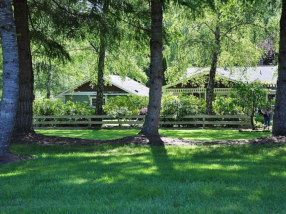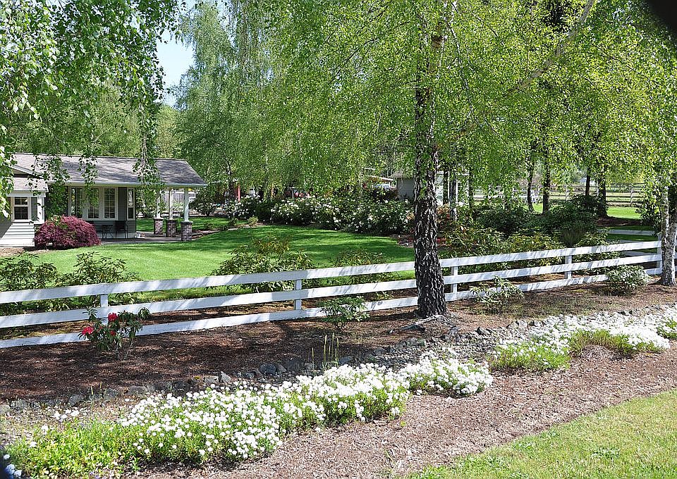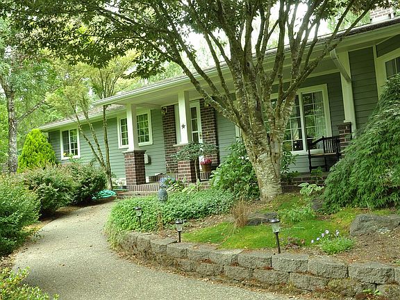 Immaculate rambler amidst park-like setting, with "hobby farm" sized barn and horse pasturage enclosed with no-climb fencing. All bordering Olalla Creek.