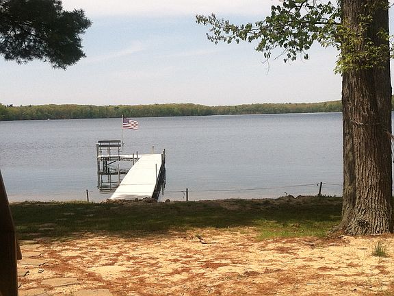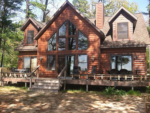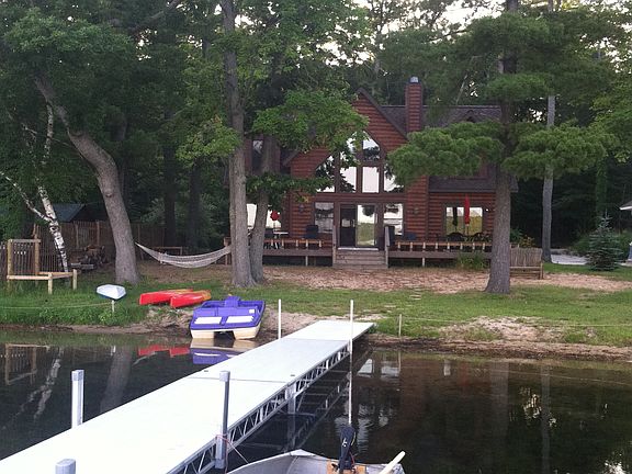 Beautiful All Sports Blue Lake w/ Sunset views from this nearly new log home in the pines. Rustic Stone fireplace in the great room,wood floors,handsome granite and stainless open concept kitchen,4 bed,3 baths.Wall of windows brings in the western light and natural beauty. Large deck for relaxing . Sandy beach,dock and fish cleaning station.Convenient Mud room w/ laundry and full bath to accommodate incoming lake traffic.Matching log garage/storage. Turn key condition w/ furnishings.Great su mmer rental.Close to State & County parks, Michigan's Adventure Amusement Park, boy scout camp, short trip to x-way and town.Hemingway never had it so good!