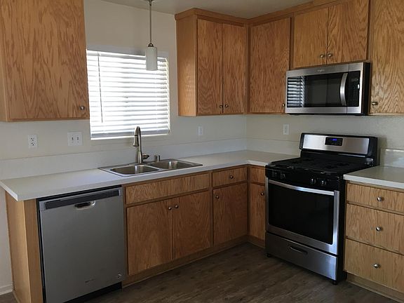 Wonderful, spacious family home located in quiet neighborhood of Apple Valley. Open floor plan with 3 bedrooms, 2 bathrooms. Lots of NEW Upgrades, including: new flooring, new carpet, new appliances, new quartz counter tops, new kitchen sink, new two inch blinds throughout, some newer interior paint, newer Air Conditioner. Beautiful view of Mariana's from backyard covered patio. Concrete driveway. Low maintenance stucco exterior. Almost one half acre of land for pets and toys. Fully fenced back yard. You will love this home. Beautifully updated and ready for move in.