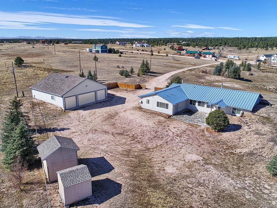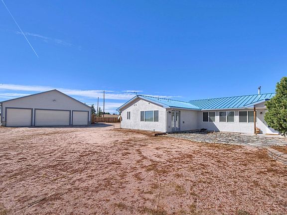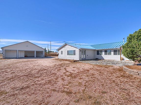 Main level country living at it's finest with this custom 2,500 Sq.Ft ranch home on 3.18 Acres. The oversized 4-car garage/ workshop is completely drywalled, w/ 220v service & pre-plumbed for a bathroom. The Master-Suite has a separate french door entrance, massive walk-in closet & a 5-piece bath w/ custom tile, dual shower heads, and His & Her's vanities. Two of the three secondary bedrooms have on-suite bathrooms. Office also has a separate entrance & wood stove. The living room is open to the updated kitchen & dining. Custom tile work can be found throughout the home. The living room has new carpet. There is a 600 Sq.Ft. barn/stable and 2 additional sheds on the property. The stucco exterior and metal roof is maintenance free. The house is nestled on a quiet cul-de-sac in Paint Brush Hills. Zoned for horses!