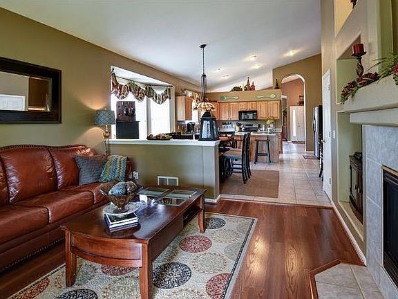 Incredible one of a kind ranch!! Absolutely gorgeous home with towering ceilings, endless upgrades, and beautiful finishes. 4 bedroom 3 bath luxury ranch features wood and tile floors throughout with carpet in the bedrooms to keep things cozy! The kitchen has stainless steel appliances, large counter tops and is very open to the living room making entertaining a breeze. 3 bedrooms and 2 of the bathrooms are on the main floor as well, and the finished basement gives you another bathroom, another space to use as a bedroom or creative space. There's also a bar set up and a cozy, luxurious room for movies! This home also looks on to a greenbelt! Come see this amazing home before it's too late!