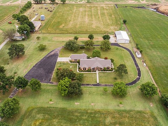 This is the home you have been waiting for! You will make many memories in this immaculately maintained home on 10 acres. The mature tree lined driveway invites you to the beautiful Pat Boone's Arkansas stone house where you will enjoy coffee on the front porch and gatherings with friends and family on the large back porch. With 2 large living areas there is room for everyone! Warm up by the grand stoned fireplace in the spacious family room and cook away in the large kitchen with an oversized island that is sure to please any chef. The oversized workshop has plenty of room for hobbies, tools, farm equipment and more! Country living in the heart of North Texas!