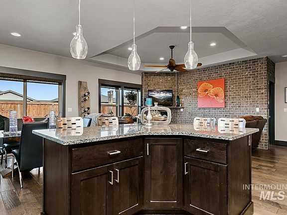 This beautiful custom home offers a rare two master suite floorplan. This one owner home is about lifestyle. Located in the highly desirable Hazelwood Village, this community features many amenities such as two community pools, a 4,000 sf community center, 1 acre park with amphitheater, dog park with washing station, walking paths, community gardens and more! Gorgeous open kitchen with stainless appliances, roomy pantry, spacious eating and dining area. A gas fireplace accents the coziness of the brick in the living room. Brick accents feature throughout. Spacious master en suite is designed for ease and comfort. Third bedroom could easily be utilized as a home office. The backyard is an oasis. Extra spacious patio is made for entertaining. Plenty of outdoor storage for toys. The hot tub is set next to the delightful landscaping making for easy relaxation. This home even includes a 220v outlet for a generator to power the home off grid. Come home to your new Southwest Boise oasis!