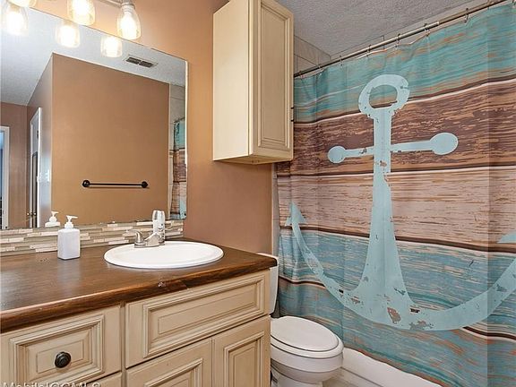 VRM: Seller will entertain offers between $199,000 and $219,000. The list price is an average of the upper and lower values.Cute home on acreage in Grand Bay! Many updates including new kitchen counters, freshly painted cabinets, and stainless appliances. Property includes the adjoining 1.3 acres to equal just over 3 acres in total. Front deck perfect for enjoying the sunshine and views. 2 storage buildings out back for additional storage. Sellers are currently working on final coats of paint in the hall bathroom, seller will power wash and re-stain the deck, seller will replace carpet with like kind with acceptable offer, fridge will remain with no value.