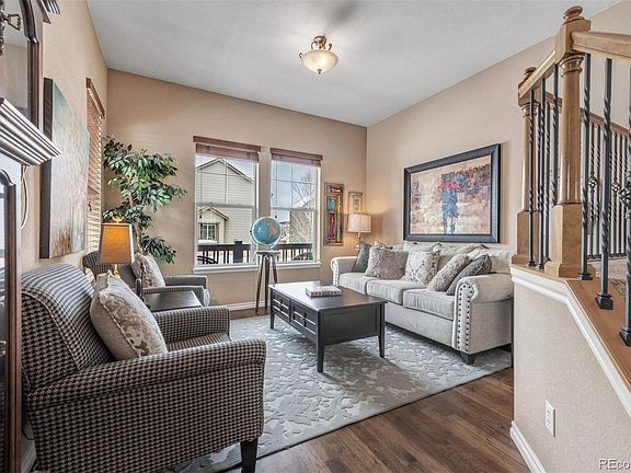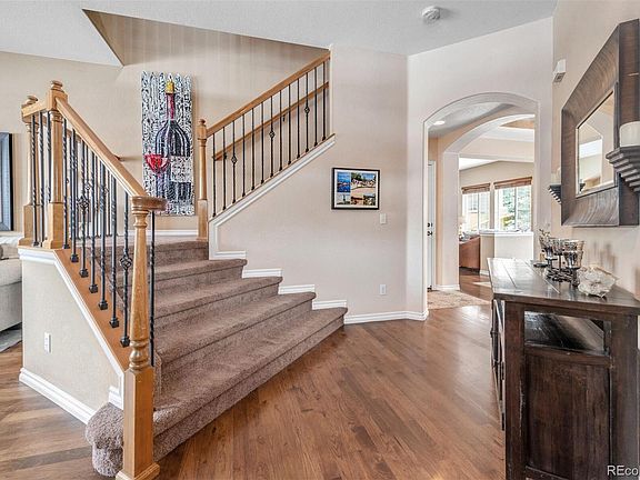 Sparkling sunshine fills every inch of this charming corner lot home in The Hearth! Welcome home to the best of Highlands Ranch living, where parks, miles of trails and open space, and a state of the art recreation center are just outside your door! Elegance awaits as you step inside to find a graceful, open staircase, extensive hardwood floors, and the perfect entertainers layout. Every detail of this home has been lovingly cared for, and the beautiful, open kitchen boasts gleaming granite counters, newer SS appliances, bar seating at the kitchen island, and plenty of cabinet and counter space. The roomy dining and living rooms flow effortlessly into the outdoor patio space, which is quiet, private, and with the east facing yard, is oh-so-cool in the heat of the fast approaching summertime! Upstairs, find 4 spacious bedrooms, a secondary bath with double sinks, and conveniently located laundry room. The serene master ensuite enjoys endless sunshine and a beautiful 5 piece bath with luxurious soaking tub. For movie lovers and gamers, the impeccably finished basement is an absolute delight, with a gorgeous bar area featuring warm wood cabinetry, elegant lighting, and gleaming granite counters. With plenty of room for a full media center, dimmable lighting adds to the movie theater mood, and the extra bonus is the conforming bedroom and beautiful bathroom - perfect for guests! Great storage, updated systems, a contractors dream garage with epoxy floors, built in sink and workshop area, plus award winning Douglas County schools - what more could you ask for? Make this the weekend you finally find Home. All offers due by Sunday, March 21st, at 6 p.m.