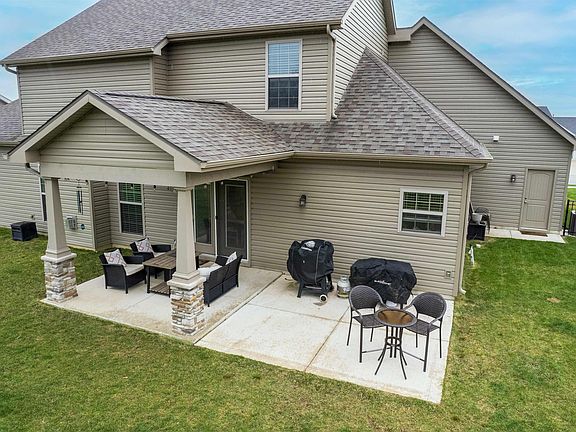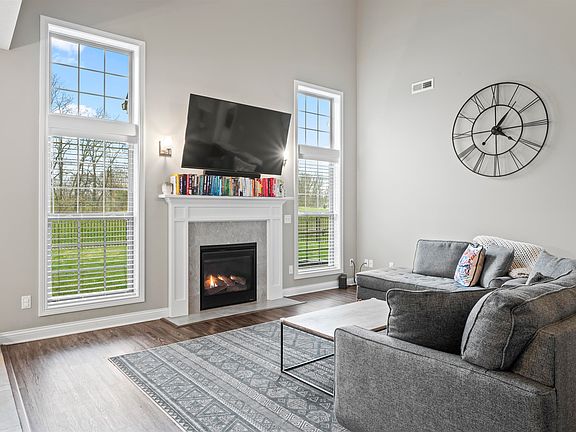 Welcome to this beautifully designed Lindsay III by Majestic Homes in the desirable Azbury Park Neighborhood. With 2,593 sq. ft. of living space, this open-concept layout includes 3 bedrooms, 2.5 baths, and a bonus room perfect for play or movie nights. The main-level primary suite offers convenience and privacy, complete with a large walk-in closet and full bath with a walk-in shower. The great room features a cozy gas log fireplace and flows into a spacious kitchen with granite countertops, a breakfast nook, and a flexible dining room or home office. A large laundry/mudroom connects to a 3-car garage—ideal for storing bikes, gear, or a workshop. Upstairs, you’ll find two more bedrooms, a full bath, and a 17x18 finished bonus room—perfect for kids, teens, or guests. Out back, enjoy a fenced-in yard and covered patio, great for family time and pets. Only 6 years old and move-in ready, this home is located in a quiet neighborhood with plenty of room to grow.
