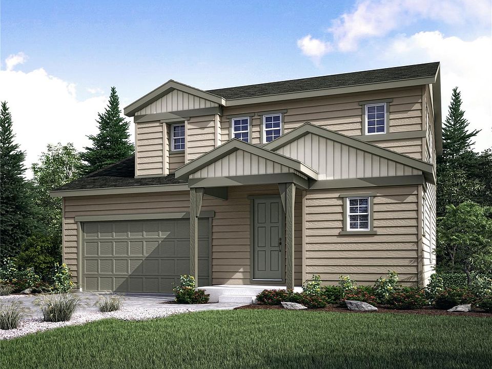 This two-story plan features a large kitchen with stainless steel appliance package and island, oversized dining with walk-in pantry, and spacious great room on the main level. Upper level has two secondary bedrooms that share a Jack-and-Jill bathroom, and a conveniently located laundry room. Completing the second floor, the primary suite has an attached deluxe bath with dual vanities, a benched shower and walk-in closet. Additional features include expanded back patio, quartz counter tops, and the home site is backing to green belt. Estimated completion in April. Don’t miss out on the new reduced pricing good through 4/30/2023. Prices and incentives are contingent upon buyer closing a loan with builders affiliated lender and are subject to change at any time.