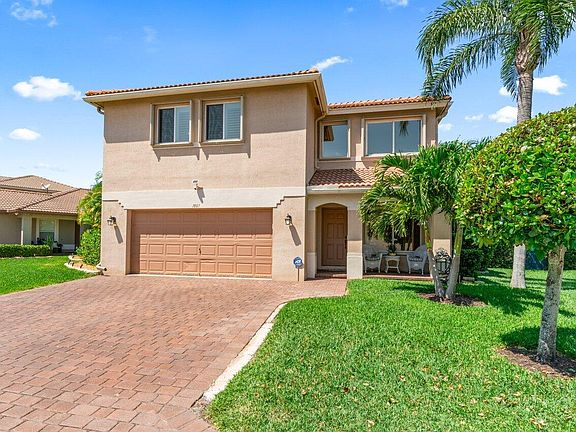 Welcome to your dream home in the highly sought-after community of Turtle Cay! This stunning single-family residence boasts 4 bedrooms plus a loft, 3 bathrooms, and a 2-car garage, offering spacious and luxurious living for the whole family. As you step inside, you'll be greeted by a grand formal living room adorned with vaulted ceilings and beautifully laid tile floors, creating an inviting ambiance throughout the first floor. The formal living room is illuminated by natural light pouring in through upgraded windows and features an upgraded fan to keep you comfortable year-round. The heart of the home is the gourmet kitchen, meticulously appointed with solid wood soft-close cabinetry, granite countertops, and a stylish tile backsplash. Enjoy cooking with top-of-the-line Whirlpool stainless steel appliances (installed in 2021), and gather around the kitchen island with breakfast bar seating. Adjacent to the kitchen is a cozy breakfast sitting area, perfect for enjoying your morning coffee while overlooking the serene lake views. Relax in the spacious family room, featuring ample windows that bathe the space in natural light. A guest bedroom on the main level offers versatility and convenience, complete with wood-look tile floors and upgraded amenities in the adjacent bathroom. Upstairs, you'll find a versatile loft space, ideal for use as a home office, play area, or additional living space. The oversized master suite is a private retreat, boasting a huge walk-in closet, a private covered balcony with tranquil views, and an en-suite bathroom oasis. Indulge in luxury with solid wood his and hers vanities, a separate soaking tub, and an oversized frameless walk-in shower. Two additional generously sized bedrooms upstairs share a beautifully appointed bathroom with a double vanity and a tiled shower/tub combo. A dedicated laundry room with solid wood cabinetry and modern Whirlpool appliances (installed in 2018) adds convenience to daily chores. Step outside to your expansive screened-in covered patio, featuring upgraded roller shades for added comfort, and enjoy the lushly landscaped fully fenced backyard with serene lake views. This home is filled with upgrades, including a new A/C unit installed in 2016, a hot water heater installed in 2019, and a reverse osmosis water filtration system. Residents of Turtle Cay enjoy an array of community amenities, including a clubhouse, heated pool, manned gate, fitness center, sports area, tennis court, meeting room, pool table, and playground. Conveniently located close to shopping, dining, major highways, and South Florida's pristine beaches, this exquisite home offers the perfect blend of luxury, comfort, and convenience. Don't miss your chance to make it yours! Schedule your showing today.