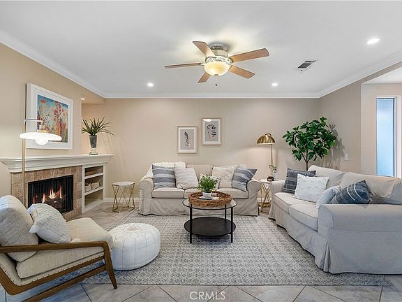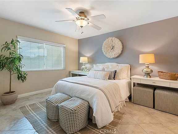 Welcome to the sought-after Village Grove Community located in West Corona. Step into this beautifully updated 3 bedroom, 2 bathroom SINGLE level home. Updates include tile floors throughout, dual pane windows outfitted with built in solar shades, granite countertops, kitchen cabinets with roll-out shelves in pantry with 2 lazy Susan corner cabinets, appliances, smart thermostat, heating and air conditioning systems. Once you walk in, you’ll find the inviting living space with recessed lighting, ceiling fan, cozy fireplace and dual pane sliding glass door which leads to the spacious back patio equipped with an alumawood patio cover. The primary bedroom features built-in cabinetry, a large hallway closet, an ensuite with a shower and updated vanity. Hallway bathroom includes a shower tub combination with an updated vanity as well. Oversized two car garage with plenty of storage in spacious cabinetry with direct access into the home leads you right into your dining area. Community amenities include a lake, clubhouse pool, tennis courts and basketball court.