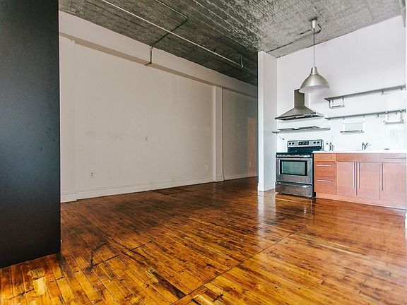 Real loft living! There is a shared backyard with the coffee shop downstairs! Across the street is L-train Vintage, a used bookstore, several top-class restaurants and bars, and a grocery store; plus! POPEYE'S. There's a vet, pilates gym, and tattoo parlor downstairs. Incredible wide open loft apartment in converted yarn factory! Laundry and amazing patio (shared with the coffee shop downstairs). Lots of character, hardwood floors, tin ceilings, exposed brick. Freight elevator for your large packages. No broker fee!