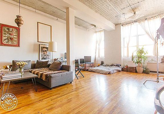 Gorgeous wide-open loft apartment available for rent! The apartment has high ceilings, stainless steel appliances, renovated bathroom, and lots of cool charm (tin ceilings, hardwood floors, exposed brick) & sunlight! The building is a one-of-a-kind loft building that has an amazing courtyard, freight elevator, laundry room, yoga studio, and Kave Cafe in the building. Shipping center/package room and pet store as well. Great location, right off the Morgan L train, near Roberta's Pizza, 983 Restaurant, House of Yes, L-Mo's Grocery, etc.. No broker fee!