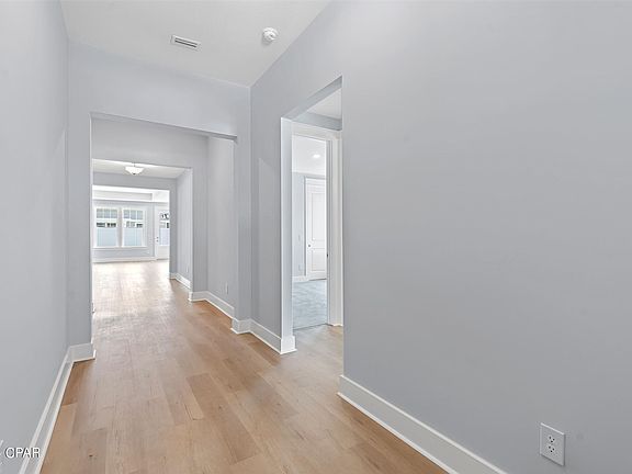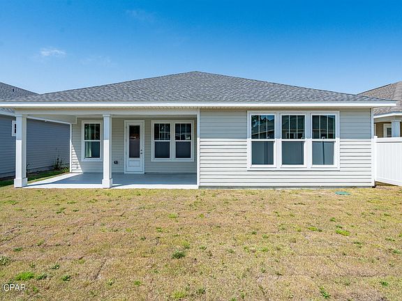 NOW COMPLETE in the Breakfast Point East community, the Crevalle plan from Fischer Homes is a spacious, open-concept design with 2,255 square feet of conditioned living space and a craftsman style exterior elevation. Upgrades were added to this 4 bedroom, 3 full size bath, 2-car garage home with a 10'x20'8'' covered back porch. The wide open living room, dining room, and kitchen area is filled with natural light and provides plenty of space to entertain. Luxury kitchen finishes include a large island, quartz countertops throughout the home, white shaker style cabinetry including a coastal blue accented island, and Frigidaire(r) Gallery stainless steel appliances including a stainless steel vent hood and upgraded backsplash. Additional features of this home include luxury vinyl plank flooring in main living areas and bedrooms (photos depict carpet, but will be changing), high grade carpet, tile flooring in bathrooms, low profile LED lighting, 8' 2-panel craftsman interior doors, architectural shingle roof with 30-year warranty, and a gas stub for a grill. All new Breakfast Point East homes are designed to withstand up to 160MPH winds with structural steel framing.