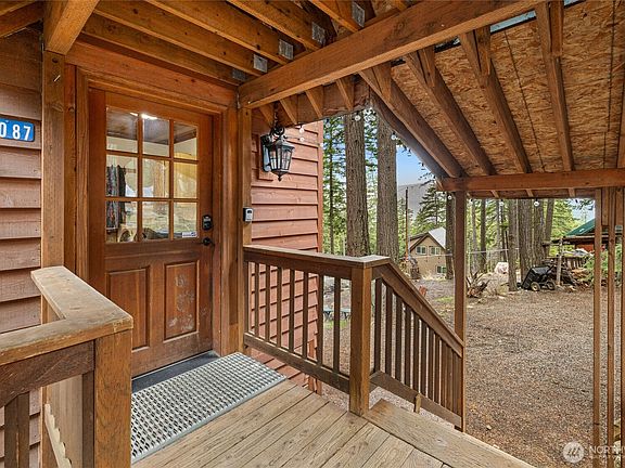 This woodsy Pineloch Sun retreat features a freshly painted interior, & partial lake & mountain view. Covered porch leads to a convenient boot room, perfect for outdoor gear. The living room has rustic cabin charm & comfort w/wood floors, stove, vaulted ceiling, exposed beams & a wall of windows. The large view deck is perched among the trees. Eat-in kitchen, primary bedroom, & bath on the main plus a sleeping loft & bonus room upstairs. Outdoor firepit, zipline with platform, & play area make entertaining a breeze. Unfinished basement, covered parking under the deck, heated toy garage, & trailer parking. This seasonal access community has a lakeside lodge, pool, sports courts, and miles of trails from your door. Short term rentals allowed.