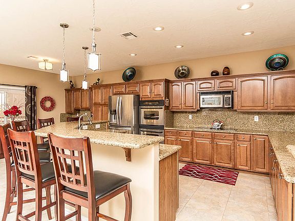 Located in the Gated Community of Summer Crest, property is situated on the eastside of the 11th Fairway of the Canyons Golf Course. AMAZING KITCHEN FOR A CHEF and ENTERTAINING. The kitchen boasts wide, long GRANITE COUNTERTOPS, perfect for a buffet line for large gatherings. ONE OF A KIND " Raised Breakfast Bar" wraps this kitchen on both sides. One section of the Raised Breakfast Bar seats "six people". DOUBLE OVENS and a " New Stainless Steel Refridgerator" are perks ! Built-in granite counter desk in kitchen. Oversized Kitchen Dining Area / Family Room opens onto back patio through "French Doors". New "wood tile flooring" installed in the formal dining area is "eye popping". Master Bathroom has Lasco Whirpool Tub. Covered Patio extends the entire length of the home with epoxy covering. Nestled along the 11th Fairway you have wonderful seclusion and privacy In your backyard. Beautiful southern views from front yard. Garage is temperature control...priceless !!!