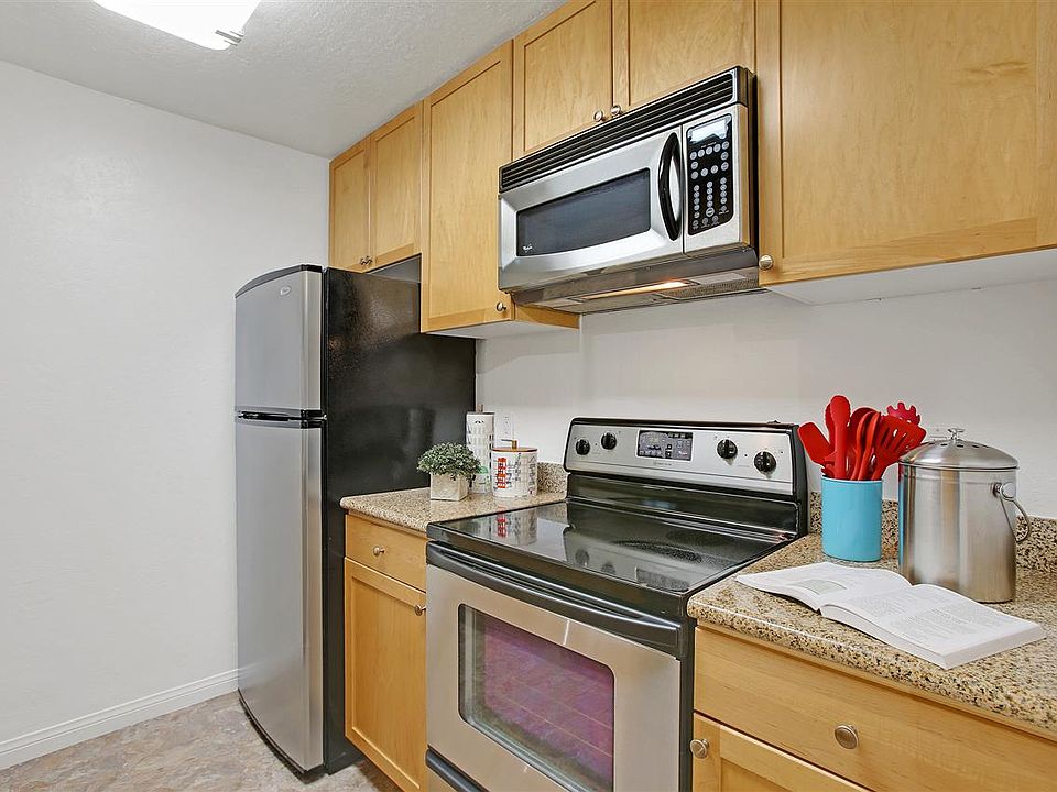 Beautifully updated ground floor unit! This home features trendy laminate floors (HOA Approved since it is on the first level), fresh paint, updated bathroom and kitchen. In addition to the spacious master bedroom, this home features a BONUS area for flexible use. Spacious balcony off the open concept great room is perfect for grilling. The kitchen is a chef's delight with granite counters, pristine cabinets and stainless steel appliances! Community features swimming pool, gym open areas. Building and parking area are both secured by card access gates. Walking distance to downtown and easy access for commuters makes this a perfect home! Roof Assessment fully paid by Seller!