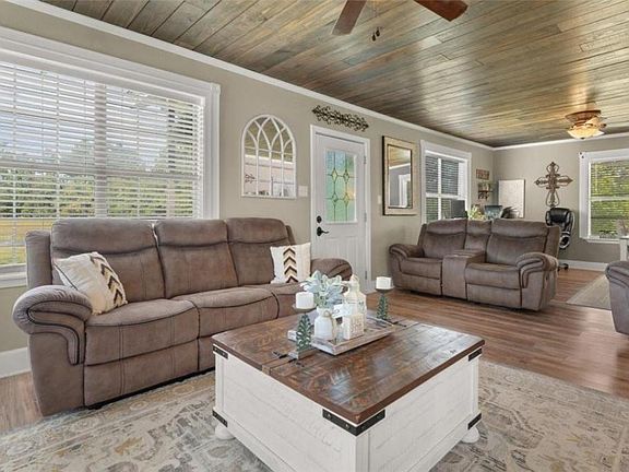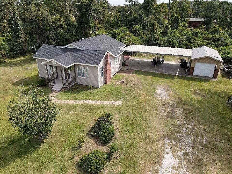 Must see! Moss Bluff immaculately presented 2 bedroom/ one bath charmer sitting on just under an acre in a gorgeous sprawling private setting! This beautifully updated home is the ideal place to call home or purchase as an investment property. Step into the welcoming living area with vintage woodwork, decorative fireplace, open floor plan and French doors leading into the well-lit kitchen featuring a Samsung convection oven with glass cooktop. Home is move-in ready with built-ins and Wi-Fi enabled central air and heat, well insulated and energy efficient. The roof is approximately 2 years old. Home is being sold as is. All measurements are more or less. Don't miss out on this peaceful retreat. Seller will offer a $3000 allowance for leveling of home.