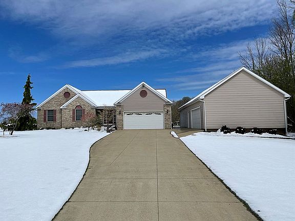 WELCOME HOME! When you enter the house you are greeted by a beautiful panoramic view of the 2 acre pond. The mature pond is stocked with a variety of fish which will allow for hours of fishing and great memories. An open concept floor plan and vaulted ceilings in the family room allows for a cozy home feeling. The kitchen comes with all the appliances and looks out to the beautiful backyard property. The master bedroom has vaulted ceilings and an en-suite bathroom with a jetted jacuzzi tub. The two other bedrooms are very spacious and have lots of closet space. The basement is perfect and waiting for someone to finish it with it being a 13 course basement and 1881sq ft. the possibilities are endless. It’s a blank slate and will make the perfect game room or whatever you can dream for it. Outside the home you will find a 53 x 24 heated and cooled building that was customized and is ready for the next owner to enjoy. I. Your new home sits on 7.215 acres . The home also comes with many additional items that can be negotiated. You won’t want to miss out on this beautiful park like setting. You will enjoy many summer nights looking out at the beautiful sunsets. You can also enjoy the clear star filled skies at night while having a bonfire with your own customized fire pit on the property. Swim or go paddle boating on the pond. The home is located just a few minutes from Route 11 and I-90, has CITY water and natural gas through Dominion The possibilities are endless when you buy this little piece of heaven. Come and see for yourself and don’t leave without making and offer! * There is an additional 5.707 acres that is for sale for an additional amount and is listed on zillow. It is a 200' of frontage and is a buildable lot Call David today to set up an appointment! 440-344-9187