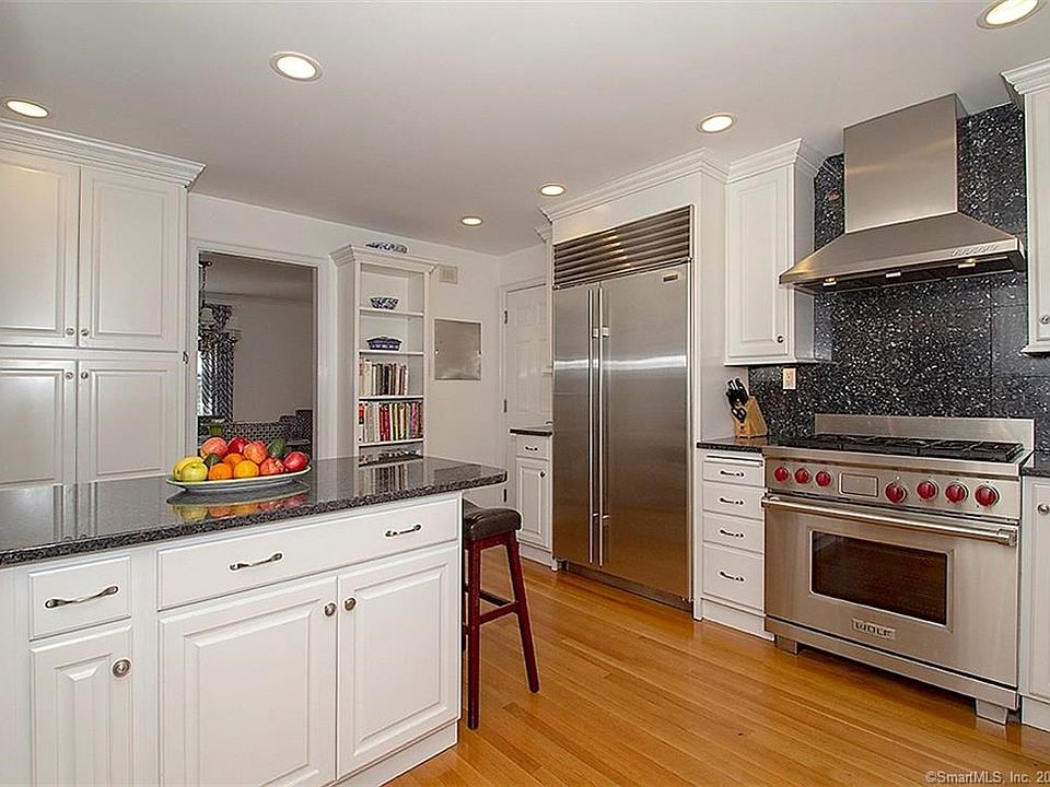 Absolutely stunning Berner Lohne constructed Dutch Colonial located on a beautiful level to rolling lot! As you enter the spacious granite floored foyer you will immediately notice the attention to detail and the quality of the renovations completed to this lovely home! You will be "Wowed" by the spacious Gourmet Chef's kitchen which features; granite countertops, an abundant amount of cabinet space, high end appliances including a Subzero refrigerator, a six burner Wolf gas range/oven, a Wolf wall oven with a convection oven/micro combination and a warming drawer. This light and bright home also features; a wood stove in the living room; gleaming hardwood floors; a first floor family room/sunroom with vaulted ceiling, walls of glass and lots of natural light; a spacious dining room; a first floor powder room; a beverage area with built-in wine cooler; skylights in the second floor landing; a gorgeous spacious master bedroom with modern spa-like en suite master bath with skylights; a remodeled hall bath; two additional second floor bedrooms; and a convenient 2nd floor Bosch washer/dryer; the finished lower level family room/recreation room with its own heating zone, tiled flooring and a marble fireplace. This finished area adds approximately 378 square feet of additional living area. There is also great outdoor entertaining space which includes a stone terrace and a wood deck lined by a wonderful stone wall. There is also lots of yard area to enjoy recreational use. New boiler, insulation and solar panels make this home energy efficient. Conveniently located close to Yale, downtown New Haven, Route 15 and Route 34. You must see this amazing home!