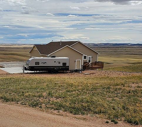 Seated on just over 10 rolling acres this three bedroom, two bath home is fenced on three sides and has a private drive leading you back to its secluded setting. Kitchen, dining and living area has wood floors and windows with views of Table Mountain. Unfinished basement that can easily be turned into another living area plus bedroom and bath.