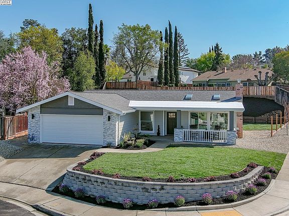 2025 Luxury Renovation! Situated on a desirable corner lot, this completely remodeled home offers a blend of modern luxury and timeless charm. A spacious covered porch welcomes you, providing a perfect spot to entertain. The open concept floor plan features a living room with soaring ceilings and expansive windows frames views of Mount Diablo. Two added skylights enhance fresh air circulation and lighting. The dining area effortlessly flows into the kitchen offering views of the beautifully landscaped backyard. The primary bedroom is a true retreat, with sliding doors that open to the back patio. It includes a luxurious walk-in closet with a center island for added organization and an en-suite bath with a walk-in shower and double sinks for ultimate comfort. Three additional well-sized bedrooms share two full baths. The front bedroom with oversized window, could also serve as a home office, offering plenty of natural light. With solid surface counters, luxury vinyl plank floors, and thoughtful design throughout, this home is 100% move-in ready. Conveniently located near Vintage Hills Elementary, dining and shopping in Pleasanton’s Downtown and quick access to the 580/680 freeway. A truly exceptional place to call home. Open House Fri 01/14 10-1p | Sat 03/15 1-6p, Sun 03/16 1-4