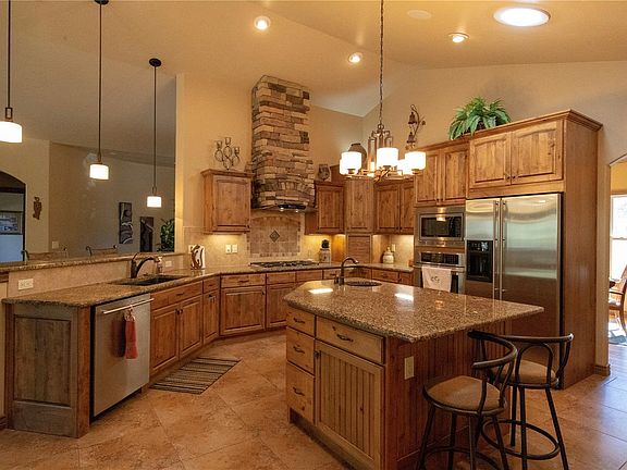 No expense was spared in the design & construction of this custom home! Located on a cul-de-sac, the setting is peaceful & serene. The home is setback from the road, beautifully situated on 5.4 exceptionally-maintained treed acres. The entire property is fenced, with an add'l fenced area for dogs.Home features stucco/stone ext., 50-yr. roof and stamped concrete front entry. Upon entering the home, there is a gracious, vaulted, 9' wide entry w/formal dining to one side & office/bdrm to the other. Other outstanding features of this home include in-floor radiant heat throughout the home and the oversized 4-car garage (garage also has floor drain & all-house fan) & solid-core interior doors. In-floor radiant heat is fired by a wood-burning exterior boiler system (Central Boiler Outdoor Wood Furnace) or can be fired with propane.
