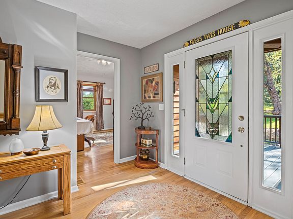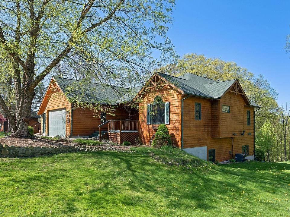 Situated NE of Fallsburgs Park on the high bank of the Flat River is a quiet place to call home. Overlooking fields and river, Quality built home with many recent upgrades. Foyer opens up to large kit. with granite countertops, Formal dining area. FLR w/fieldstone FP. 4 bedrooms 3 full baths.Two levels of decking, hot tub. Downstairs are two bedrooms full bath with steam shower. Attached two stall garage and additional detached 2- stall garage. Iron water filter, whole house generator, and delightful views of landscape and wildlife. Find privacy and serenity here.