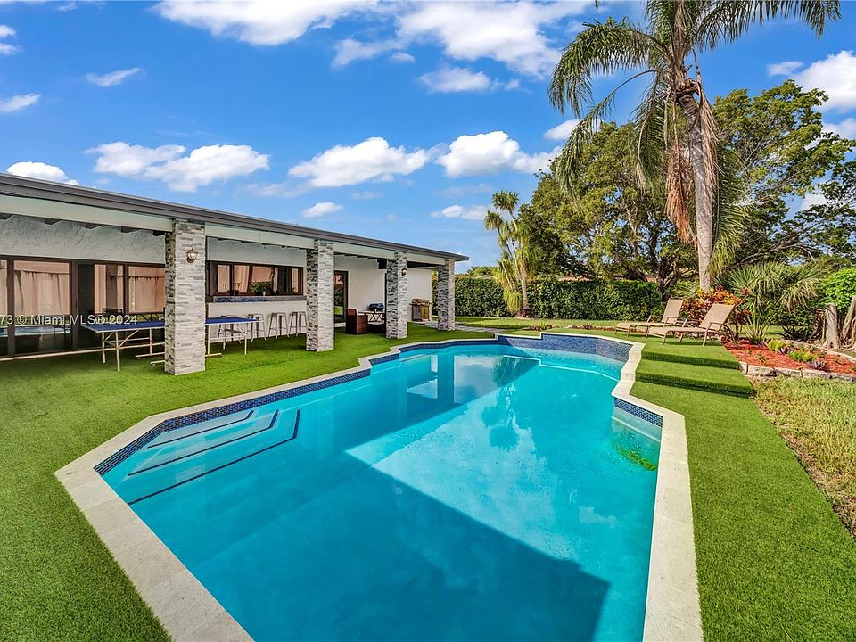 Recently renovated 6 bedrooms 4 full bathrooms home located in highly sought after Kendall neighborhood with NO HOA and large corner lot. NEW Roof, Impact Windows and Doors. Walk into this stunning split design home, with two master bedrooms. Kitchen with stainless steel appliances, two tone kitchen, and granite counter tops. Relax by the pool in the spacious fenced backyard with a turf pool deck and covered terrace perfect for hosting friends and family. Home can and is currently being used as a Short Term Rental. Please read Broker Remarks. Driving Directions: