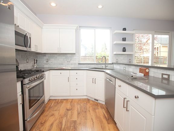 This newer, private West Slope home is modern, full of light and updated throughout. Features a gorgeous remodeled kitchen (quartz and marble tile), three bedrooms plus main-floor den/office and spacious yard. Newer exterior paint and solar panels, garden beds and large great room floor plan for maximum entertaining. Centrally located but tucked away. Fabulous schools! Note: Sunnyhill is not a through street. Please enter from 110th.