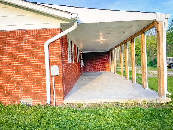 All Brick Ranch, 3 Bed, 2 FB, 1,436 SF, 2 car ATTGAR w/Morton Pole Barn & Carport on 2.19 AC in Eminence School District. Watch the Sunrise, Sunset & Wildlife on the newly renovated, covered front porch (Summer 2022). Roof less than 1 y/o (9/2022) with new 6" gutters. 2 new windows replaced on West Side of house. Subfloors replaced in the Living Area and Kitchen with new LVP flooring (2/2023). HVAC 5 y/o. New toilets in both BA. Wood Burning Fireplace in the Living Area w/sliding back doors that lead to a partially fenced area. Half a mile walk from Lake Melissa, offers public fishing and camping. Price is adjusted down for your aesthetic renovations and finishing touches.