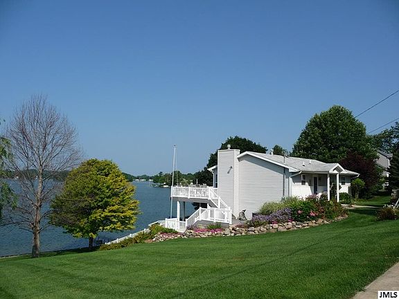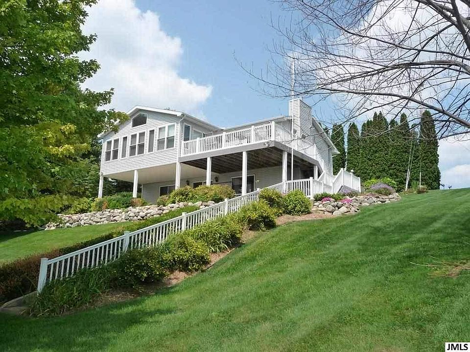 Panoramic views cast along this lakefront home on private, All-Sports South Lake LeAnn. Enjoy 174 ft of sandy beach frontage w/a gradual slope to the waters edge, steal seawall & dock that's included. Over 2,000 fin. sq ft, situated on 3 lots, this home has been completely updated throughout & is in move-in condition, just in time for Summer. Main floor lakeside family room addition in 2003, features a wall of windows, vaulted ceilings, recessed lighting & slider to the trex deck that spans the length of the home, while being completely maintenance free w/vinyl railings. Beautiful hardwood floors greet you in the foyer & are carried throughout the kitchen/dining areas. Finished walkout LL is the perfect place to entertain w/add. living room, gas FP, bedroom & full bath featuring walk-in shower & glass door enclosure. Walkout leads to expansive concrete patio that's covered from the deck above, allowing the perfect place to gather shade from days on the lake. Home warranty included.