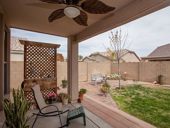 Stunning home from the moment you walk in w/ very open floor plan you can tell this home is loved! Meticulously maintained home so energy efficient w/low utility bills w/fans throughout, sunscreens, extra insulation, sealed duct work & newer water heater! Nice neutral tile in all the right spots! Roomy kitchen w/lots of cupboard space, pantry & built-in micro. Great Master suite w/double sinks, sep shower/tub, huge walk-in closet along w/extra built in cabinets! Great laundry area w/cab & room for fridge/freezer. Extended 3 car garage has extra cab & insulated door w/keypad entry. This home has storage beyond belief! Beautiful security screen front door. The backyard is so inviting with covered patio, raised planters, grass area, paver walkway and shed.