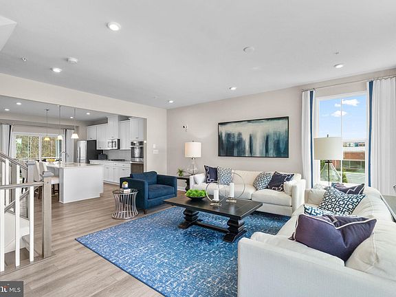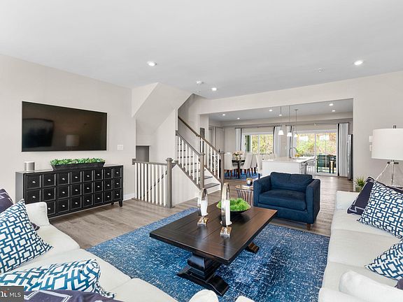 Stunning end-of-row townhouse built in 2021 by NV Homes, formerly a model home, offering 2,784 square feet, 3 bedrooms, 3 full bathrooms, 1 half bath, and a 1-car garage in sought-after Greenleigh at Crossroads. Inside, the home is beautifully appointed with high-end finishes, an open and flowing floor plan, and a neutral color palette that creates an inviting, sophisticated atmosphere throughout. The entry-level features a fully finished family room with a full bathroom and walk-up exterior access. The open-concept main level boasts a bright and airy living room, a stylish powder room, and a gourmet kitchen with a breakfast area. The kitchen is designed for both function and elegance, showcasing stainless steel appliances, double wall ovens, upgraded countertops, an oversized island with seating, pendant lighting, a chic tile backsplash, and ample cabinetry, along with access to the outdoor space. Upstairs, you'll find a conveniently located laundry area, three spacious bedrooms, and two full bathrooms, including the luxurious owner’s suite complete with a double sink vanity in the ensuite bath. The standout balcony offers a unique stone accent wall with a floating fireplace and space for an outdoor TV, all overlooking a lush, flat yard that backs to serene trees. Enjoy resort-style community amenities including a pool, clubhouse, fitness center, dog park, playgrounds, and scenic trails.