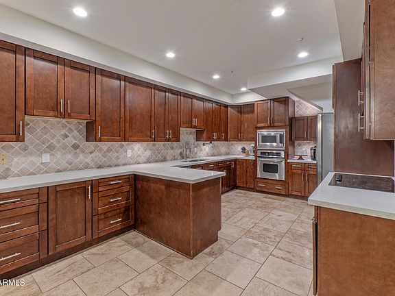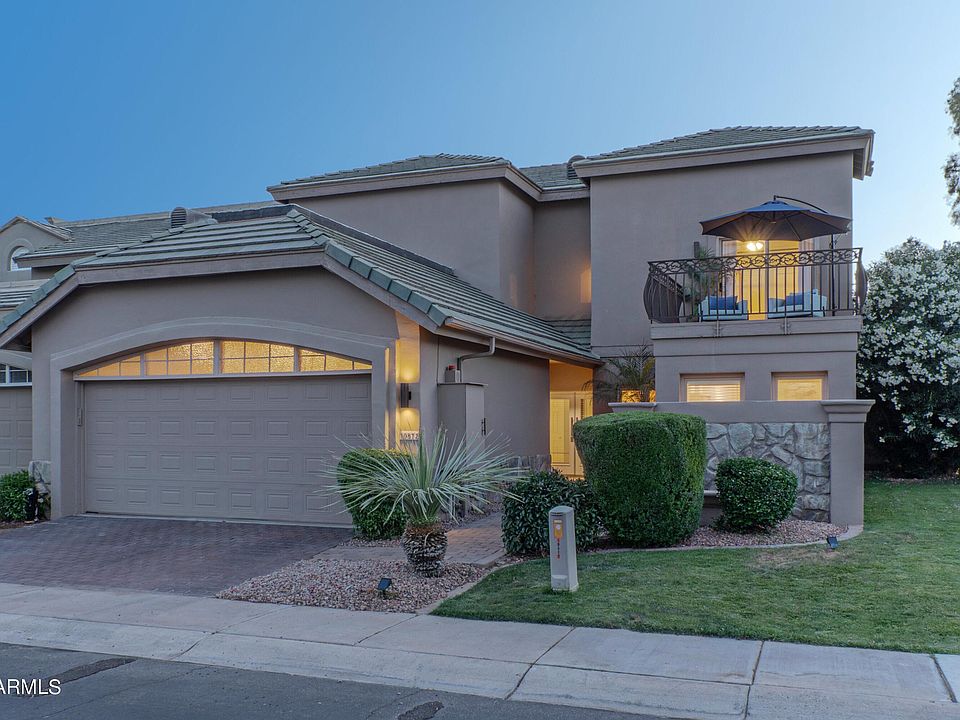 Stunning golf course property in Scottsdale Country club complete with it's own spectacular sunsets. This 3 bedroom 3.5 bath has a 2 master suites including a MAIN FLOOR master. Upstairs suite includes a gorgeous patio. The kitchen boasts quartz countertops, upgraded cabinetry , and stone backsplash. The living space is open with a wine wall and floor to ceiling stone fireplace. Upstairs is two additional bedrooms with a open loft that is currently being used as an office and exercise room. Step outside in the evening to enjoy the sunsets overlooking the golf course as you swim in your private pool or soak in the hot tub. Perfect location - close to everything Scottsdale has to offer including Kierland , Scottsdale Quarter and Old town Scottsdale.