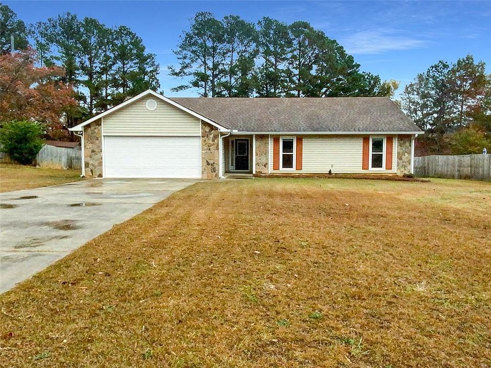 Lovely 3/2 ranch home in Hampton with no HOA. This home is on a nice level lot with a fenced back yard. It has fresh paint and is move in ready! This home has a nice layout with a large great room with vaulted ceilings and a cozy fireplace that leads to the deck in the back. The kitchen has tons of counter space and the appliances are stainless steel. The master bedroom is oversized with vaulted ceilings and a nice master bathroom with double sinks and separate soaking tub and shower. There is also a 2 car garage plus a shed in the back!
