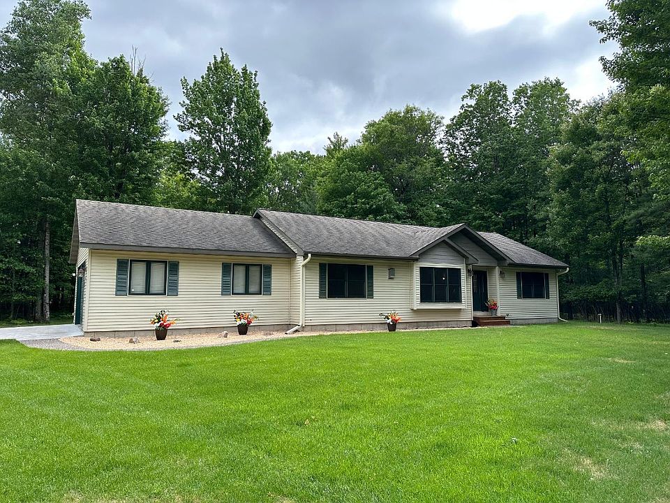 Great home in a great location. Move in and make this property yours! Drive through the towering pines in the Whistling Pines subdivision to Carley Court where you'll find this great ranch home tucked in amongst the pines at the end of the cul-de-sac provides excellent privacy. The master bedroom suite along with two additional bedrooms and laundry upstairs create a fantastic first floor layout. The basement is an open canvas. Nine foot ceilings make this space ideal for turning into a fun gathering space. A bathroom has been stubbed in and there is an exit door leading up to the large back yard. A two car attached garage with storage space rounds out this move in ready property. Close to town yet you will have the feeling of being out in the woods. Close to area lakes, shopping, and the health care systems. This home has it all!