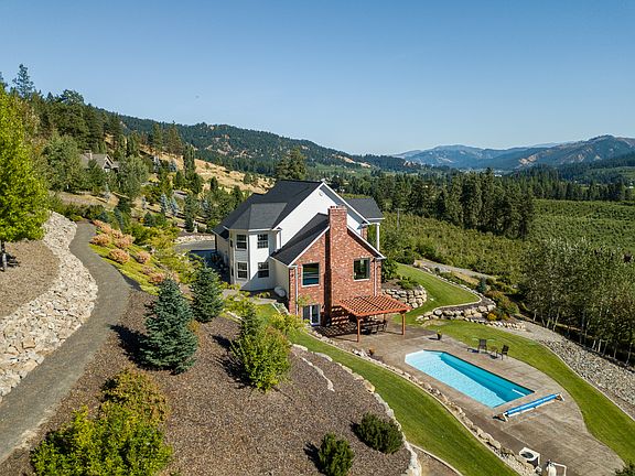 Beautifully appointed custom estate nestled in the private serene setting of Leavenworth. Take in the panoramic views of the Enchantment Mountains from every angle of the 2.75 acres of meticulously cared for grounds. Both comfortable & formal areas make this 5 bdrm, & over 6,000 sqft home both inviting & relaxing. Grand room w/soaring ceilings & fireplace warms you the moment you walk in. Enjoy a formal dining & living room alongside a Chef's kitchen that make entertaining a delight. Retreat to your Spa-like master suite w/ a claw foot tub, & tiled walk-in shower. Lower level features a spacious family room with kitchenette that is the perfect place to retreat to. Sprawling entertaining spaces flow outside to the outdoor living area with an in-ground pool, expansive patio area & pergola.