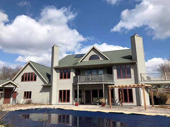 This is a slice of paradise tucked away on 8 rolling wooded acres. This lovely and spacious home is a must-see. Many quality details with artistic finishing that can only be appreciated in person. Set up on an elevated drive with a view of Balker Lake, gardens and a variety of birds bring a peaceful ambiance. Four outdoor decks, pergola, gazebo and a large in-ground saltwater pool, offer a home designed for entertaining, while the energy efficient heating systems bring you huge savings while living it large.