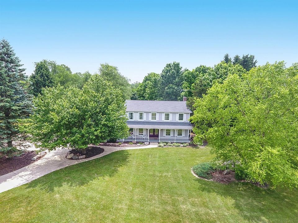 Looking for room to grow? As you drive up Killarney, a Natural Beauty Road, you instantly feel transported Up North. Up through a tree lined drive sits a plateau where this home is perfectly surrounded by 40 acres of beautiful rolling hills, once the site of the Irish Hills Christmas Tree Farm, now your private oasis for wildlife with a natural pond plus a heated two story 1,200 sq ft stick built barn. Quality finishes throughout the entire home include; wood trim, crown moulding, corian counters, & sconce lighting.Your new home has 5 bedrooms, three full baths, with 3,600+ square feet of character and charm. First-floor living is easily with an updated bath that has a walk-in shower, first-floor laundry, first-floor office with built-in cherry bookcase & wet bar sink, large dining room, huge family room, nicely separated by french doors from the front parlor. The large country eat-in kitchen is the hub of this home with room for a huge farm table. Enjoy a fire in the custom masonry fireplace faced with antique bricks. The finished basement adds fun & charm with a distinctive cottage theme great for playing house and nurturing imagination. To complete the space there is a built-in nook perfect for cards, board games, or puzzles.
