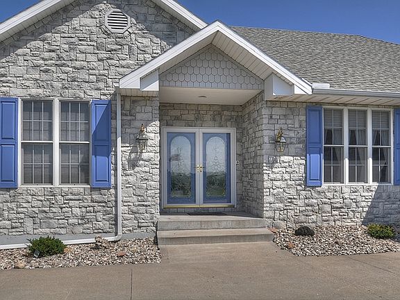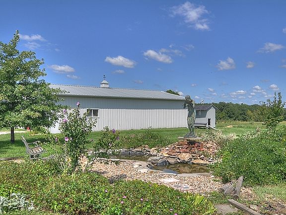 WELCOME TO YOUR OWN PRIVATE OASIS ON APPROXIMATELY 52 ACRES surrounded by fruit trees, 2 stocked ponds, 2 ornamental ponds, metal shed 50x30 with half bath, concrete floor and electricity. Home features include 2 fireplaces, intricate trim work, custom cabinetry, finished walkout lower level with family room, full bath, second kitchen and possible fourth bedroom. Fabulous sun room to enjoy the sunsets and sunrises everyday. Main level kitchen uppgraded with tile, stainless steel appliances and Corian counter tops.