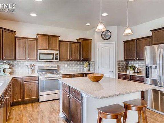 Fantastic 2-story home in North Fork w/ loads of space. Open floor plan with hardwood floors, main level office, formal dining, and high ceilings. Gorgeous kitchen features modern subway tile backsplash, SS appliances, granite countertops, staggered dark wood cabinets, large island with bar seating, and walk in pantry. Master suite features attached bathroom and huge walk-in closet. Upper level loft. Upper laundry room w/ built ins and sink. Finished basement has two more bedrooms. Extended oversized 2 Car garage. Central A/C. Award winning District 20 schools. Quick access to I-25, close to Peterson AFB and Air Force Academy Owner pays HOA and trash. Renter is responsible for water, gas, and electric. One month's rent deposit is due at signing. No pets or smoking allowed. Qualifications required 680+ credit score, show 3x monthly rent with provable income, no prior evictions, criminal history, or collections. **Please message me to schedule a showing**
