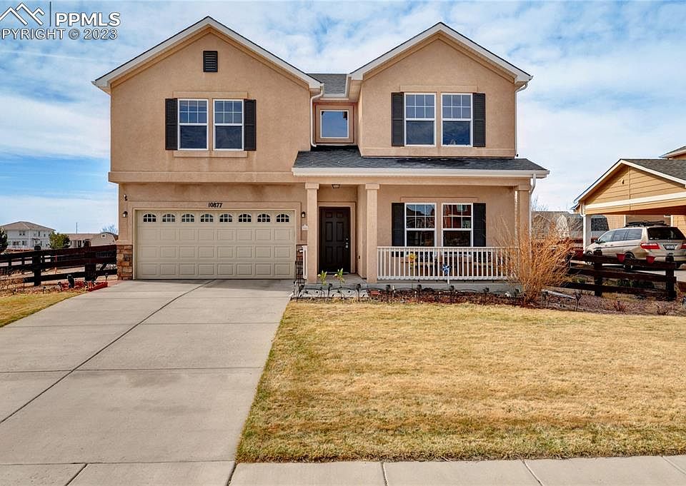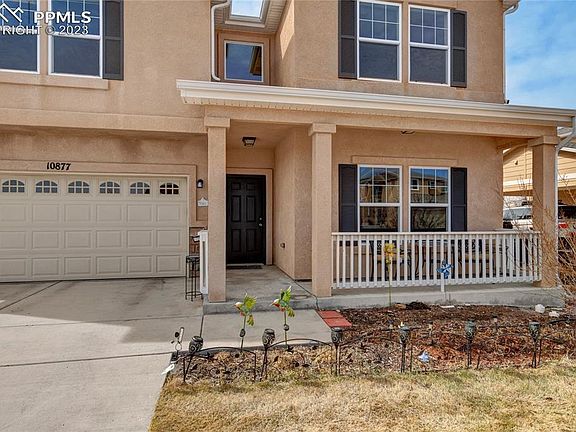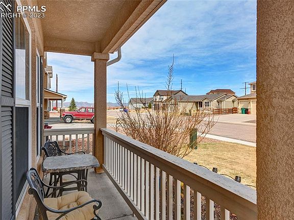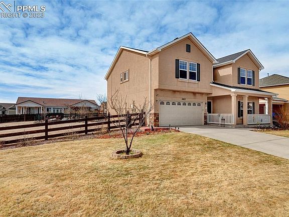 This beautiful home in Peyton, CO offers luxury living in a peaceful neighborhood. The main level features a spacious living room with large windows, a modern kitchen with ample storage space, and a dining area that leads to the backyard. The master suite is located on the upper level and includes a large 10x10 walk-in closet and a beautiful en-suite bathroom with a soaking tub and a separate shower. Other features of the property include a two-car attached garage and central air conditioning. The backyard is fully landscaped and perfect for outdoor living, with a covered patio and a fire pit. Lovingly added to by the current sellers, you will find hundreds of low maintenance perennials and trees, giving you a parade of color through the seasons. And for the furry family member, the back yard shed doubles as a heated dog house with its own thermostat! Whether you need a peaceful oasis or a spacious flowing spot for friends and entertaining, this home has you covered! Conveniently located near shopping, dining, and entertainment options, this property is perfect for those seeking comfort, luxury, and convenience. Don't miss the opportunity to own this stunning home in Peyton, CO. Pictures of the backyard in full bloom are from last summer 2022.