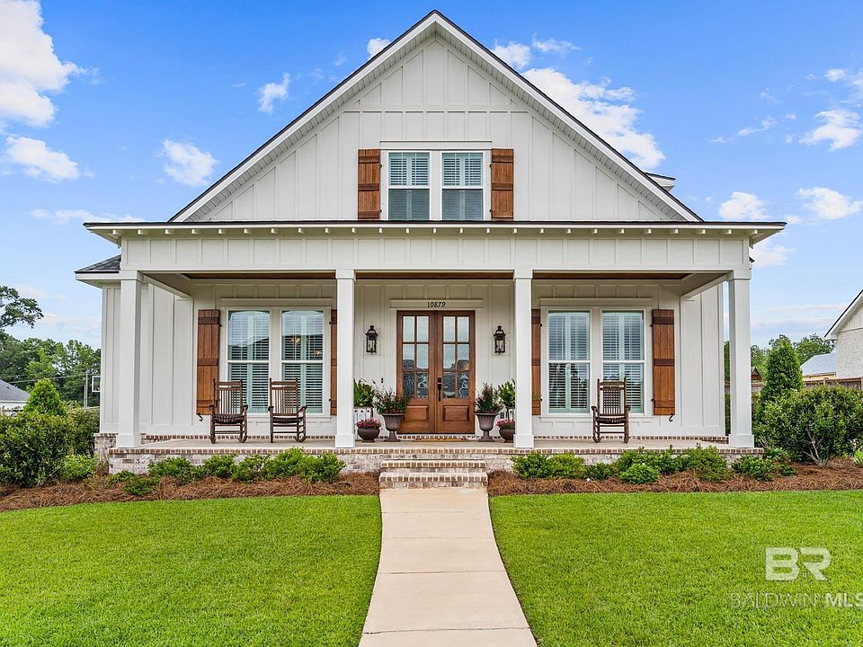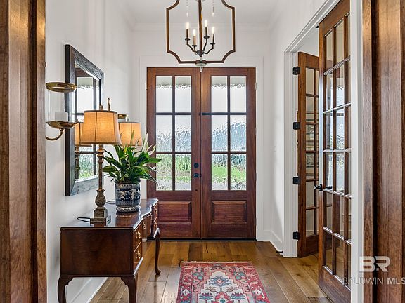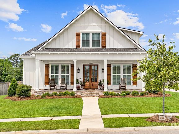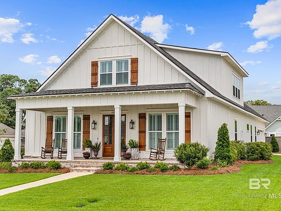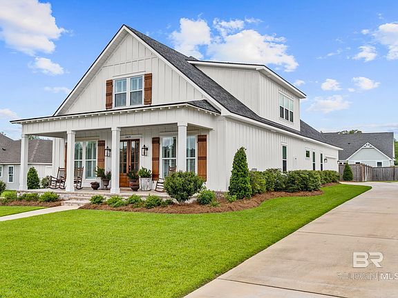 Elevate your living experience in The Verandas, one of Fairhope, AL’s most sought-after communities, where residents enjoy access to an array of upscale amenities such as a zero-entry swimming pool, stocked ponds, fruit orchards, and beautifully landscaped common areas. This Pickering built gold fortified home is the epitome of perfection. Every detail was carefully chosen, creating a space of unmatched beauty and sophistication. From the impeccable landscaping to the wood accents, you immediately notice that its curb appeal is equally impressive. Prepare to be captivated as you step inside and witness this home’s charm! Beautiful custom light fixtures, wood floors, plantation shutters, and high ceilings offer the perfect ambiance. The gourmet kitchen was designed for both cooking and entertaining in mind. It is equipped with stainless appliances, including a gas range and pot filler, as well as a large island and spacious walk-in pantry. The custom wood vent hood and the chic backsplash further enhance its aesthetic appeal. With the formal dining room and breakfast area, there’s no shortage of seating options for any occasion. The living area is complemented by beautiful columns and a gas log fireplace. The main level primarysuite features a lavish bathroom offering double vanities, a freestanding soaking tub, a custom tiled shower, and an oversized walk-in closet with custom shelving. Additionally, there is one more bedroom downstairs, while the remaining two are located upstairs, each featuring walk in closets and ample space. When you’re not enjoying the comforts indoors, you’re sure to spend a lot of your time on the screened in back porch which boasts beautiful wood ceilings and a brick woodburning fireplace. There is also an extended patio area perfect for grilling. Other enhancements include a large, floored attic space for storage, tankless gas hot water heater, irrigation system, gutters on the back of the home, and a portable generator transfer switch. Bu