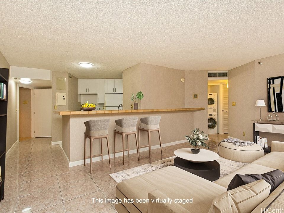 Fee Simple a true One Bedroom unit in the heart of downtown Honolulu. Short Distance to Downtown, Restaurants, Gym, Banks, Aloha Tower, and more. This unit comes with a Large Den that can be use as an office or Entertainment Room. Large Glass Window to allow lots of natural lights. Has partial ocean view. This unit is one of the few stacks that has washer and dryer in unit. Move in Ready. BMX zone building so allows both Commercial and Residential use. Building Just recently got their Certification of Occupancy back from the City. Sold AS IS.