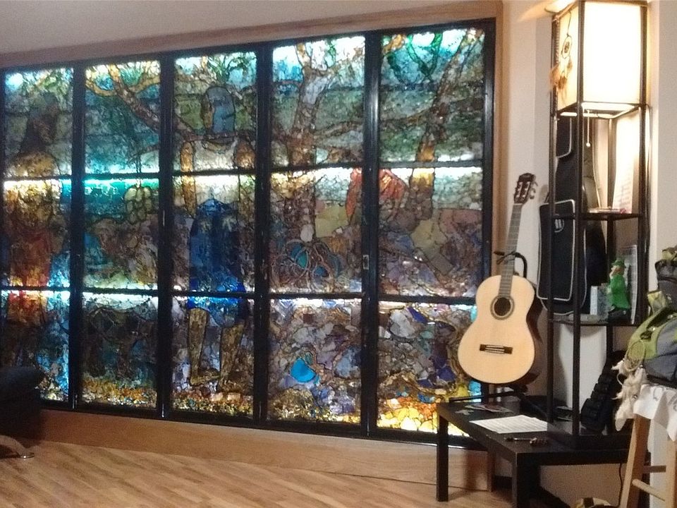 Located in Honolulu's Financial District conveniently located near bus stops, Tamarin Park, Chinatown, Hawaii Theater, Aloha Tower, Court Houses, Hawaii State Capital, Iolani Palace, Federal Building, Government offices, Restaurants, Shops, Banks, Post Office., etc. This desirable 2 bedroom, 1 bath interior unit includes 6 gorgeous stained glass panels depicting famous Gaugin story, dining table with chairs, refrigerator, stove, bookshelves, filing cabinet, desk and chair, small fridge, microwave, faux plant and any other miscellaneous office furniture, a reception area, air conditioner (replaced 9/14/23), sprinkler system and a reserved