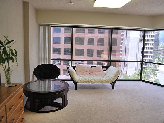 Well maintained 1 bdr/1 bth condo in the heart of Honolulu and financial district. Fully furnished with a spacious bedroom. Nice views of the city. Includes central AC and 1 covered pkg. Amenities include a pool, whirlpool, community laundry, and 24 hr security. Prime location close to HPU, Walmart, 24 hr fitness, Safeway, and restaurants. NO VIRTUAL SHOWINGS. MUST VIEW IN PERSON BEFORE APPLYING. VIEWING MUST BE SCHEDULED ONLINE.