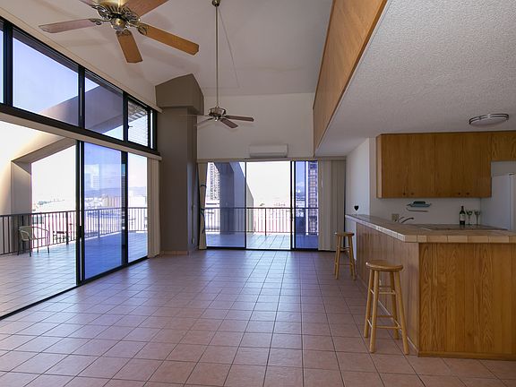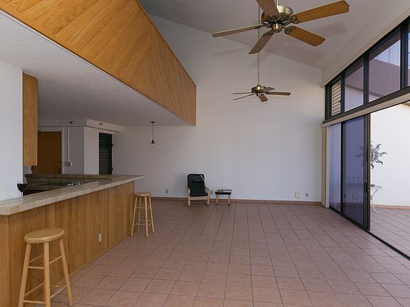 Wall to wall, ceiling to floor glass walls slide open to your own personal huge Lanai. See for 50 miles. Watch the sun set over the Western mountain range, while you soak in your own private outdoor Jacuzzi. Nothing else like this on the Island.